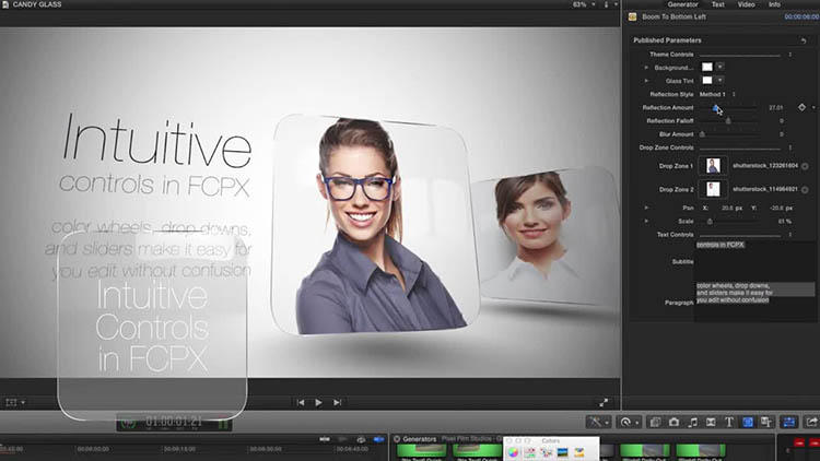 Glass Candy è realizzato esclusivamente per Final Cut Pro X. Guarda la finestra di ispezione FCPX per trovare controlli facili da usare. Cambia i colori di sfondo del testo e dell’argomento, regola il testo e usa le aree di posizionamento facili da usare per creare il progetto che hai sempre desiderato. Trascina, rilascia e crea. Guarda come il tuo progetto prende vita senza un singolo fotogramma chiave.